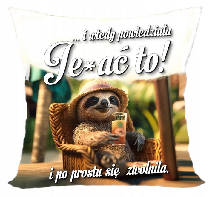 • poduszka – poszewka + wypelnienie – napis: “…i wtedy powiedziala Je*ac to i po prostu sie zwolnila!”