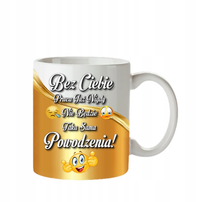 • kubek 330ml – napis: “Bez Ciebie praca juz nigdy nie bedzie taka sama. Powodzenia!”