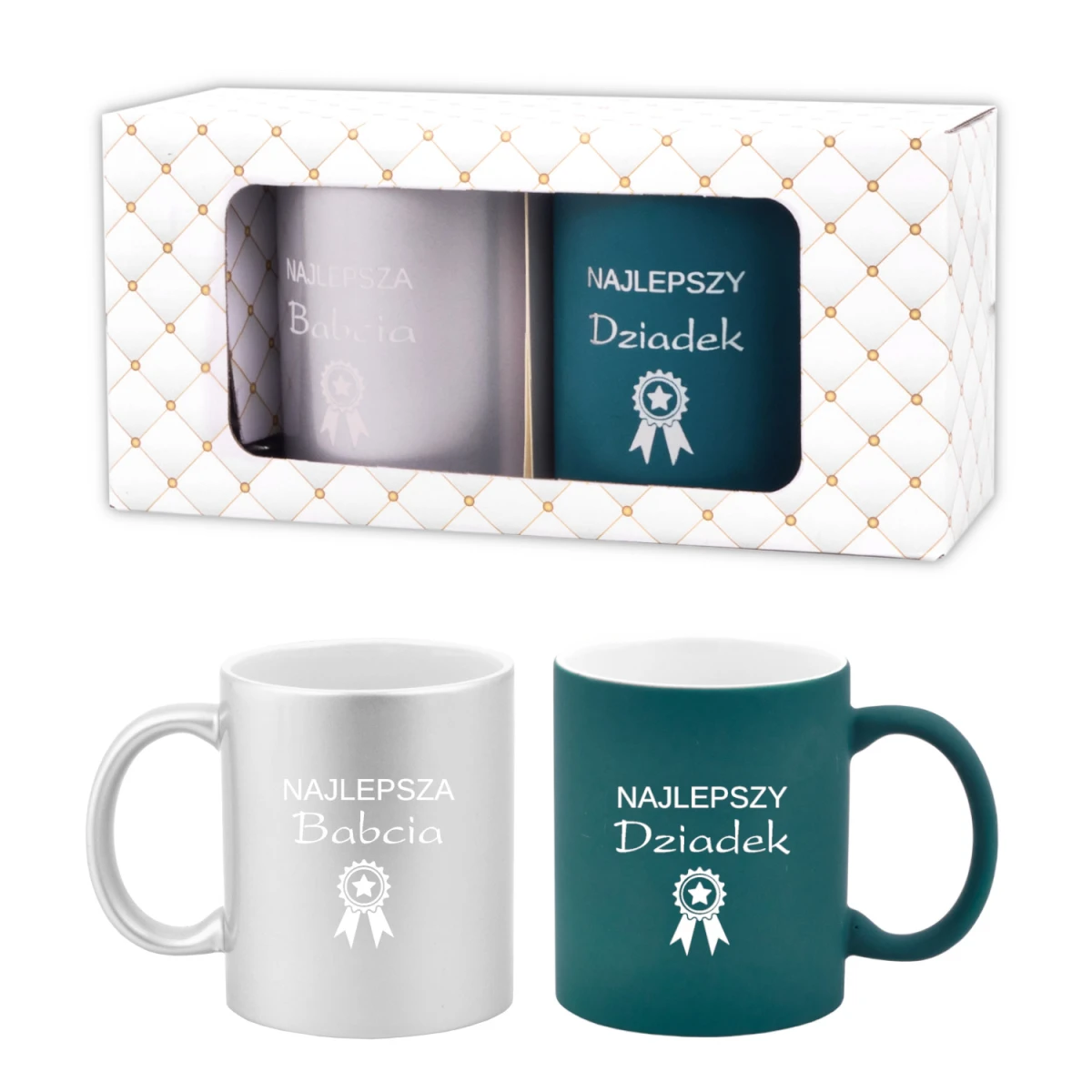 Zestaw kubkow (2szt.) “Najlepsza Babcia / Najlepszy Dziadek” (kotylion)